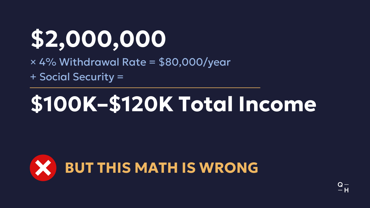 If you have $2 million saved for retirement, congratulations, you're in an excellent position. But that $2 million doesn't translate to $80,000 per year of spendable income. It just doesn't.