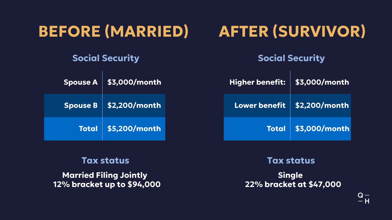 So suddenly, the surviving spouse is paying higher tax rates on less total income.