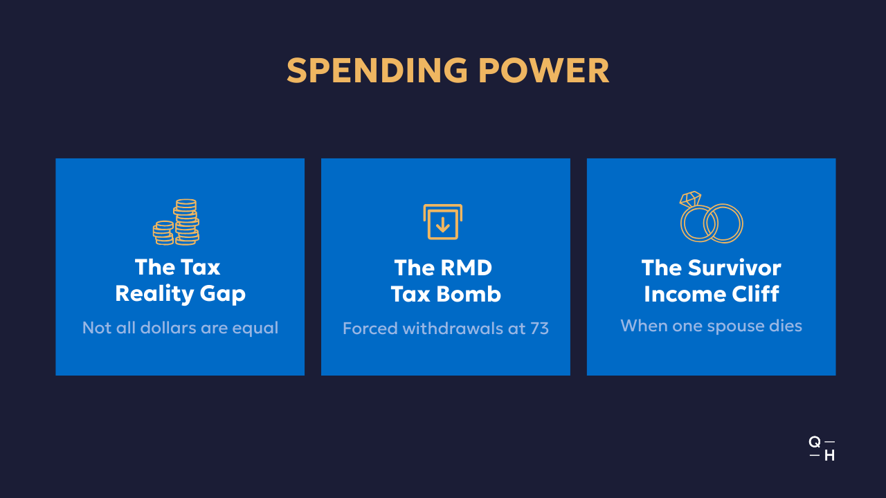 After accounting for the tax reality gap, planning around the RMD tax bomb, and preparing for the survivor income cliff, your actual sustainable spending is probably closer to $55,000 to $65,000 per year from your portfolio.