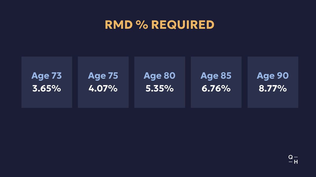 Starting at age 73, the IRS requires you to withdraw a percentage of your traditional IRA and 401(k) balances every year. In your first year, it's 3.65%. That percentage increases every single year as you age.